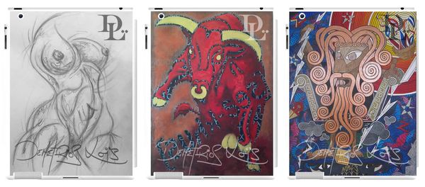 Print of painting or sketch, DL logo and the Demetrios Lois signature.